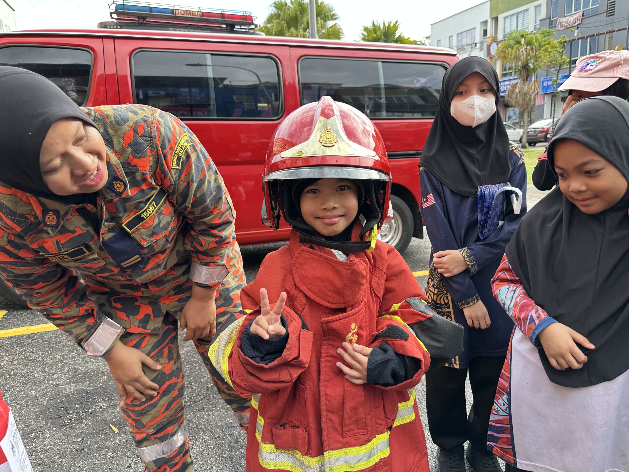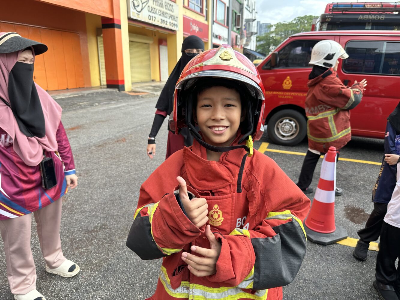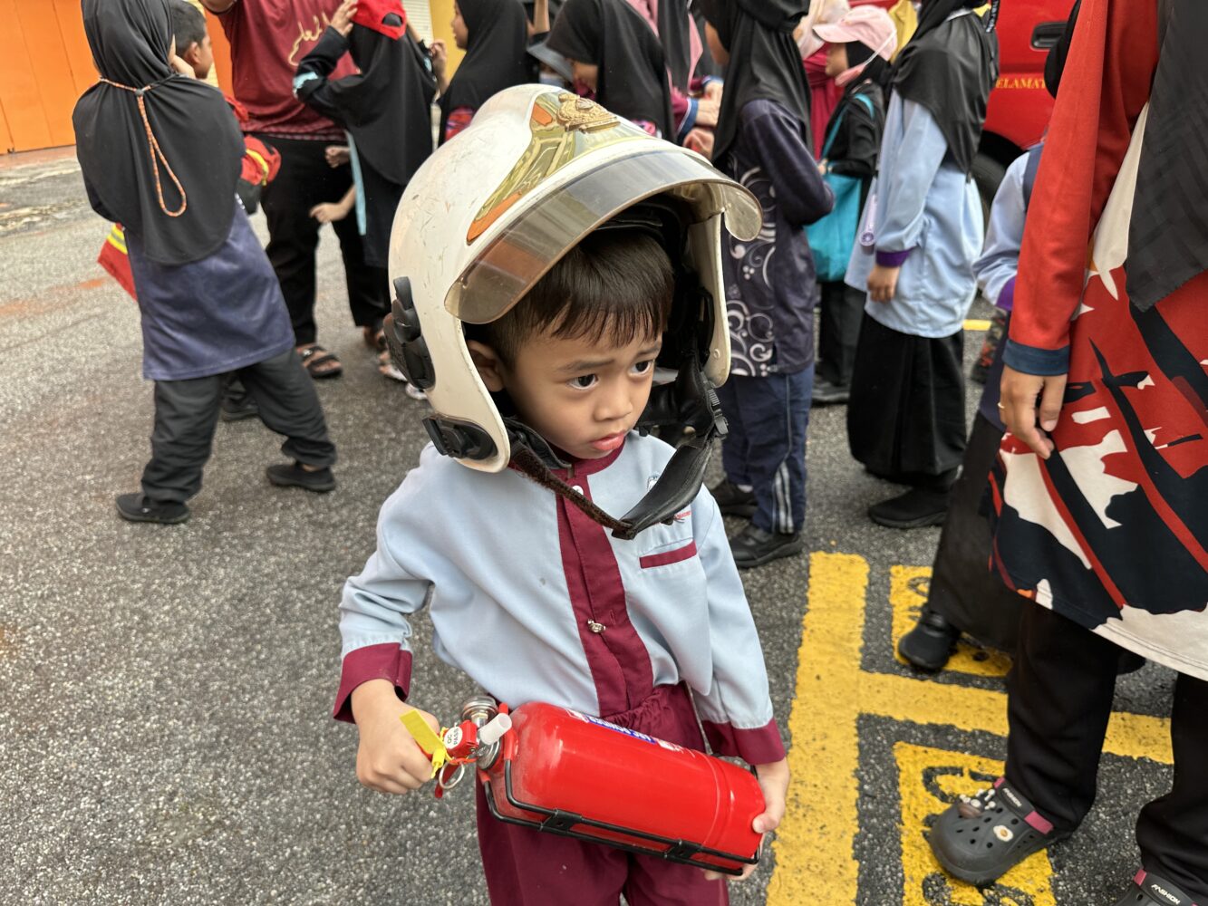 Lebih menarik, murid-murid turut diberi peluang merasai sendiri pengalaman sebagai seorang anggota bomba cilik dengan memakai pakaian khas serta memegang peralatan keselamatan. Wajah ceria dan berani mereka jelas terpancar, seolah-olah bersedia menjadi wira dalam menghadapi api.